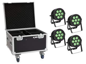 Eurolite Set 4x LED IP PAR 7x9W SCL Spot + Case mit Rollen